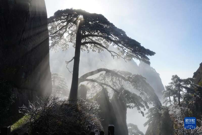 冬日清晨的黄山,阳光从玉屏峰和天都峰之间穿梭而来,透过迎客松的树冠形成一道道光柱,胡晓春和李培生拍摄了这难得一见的美景,分享到各自的朋友圈。
