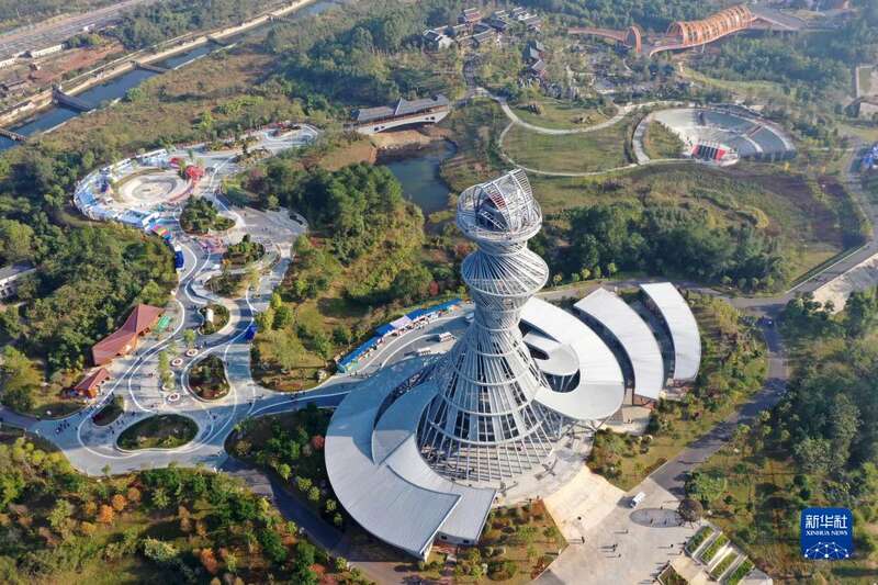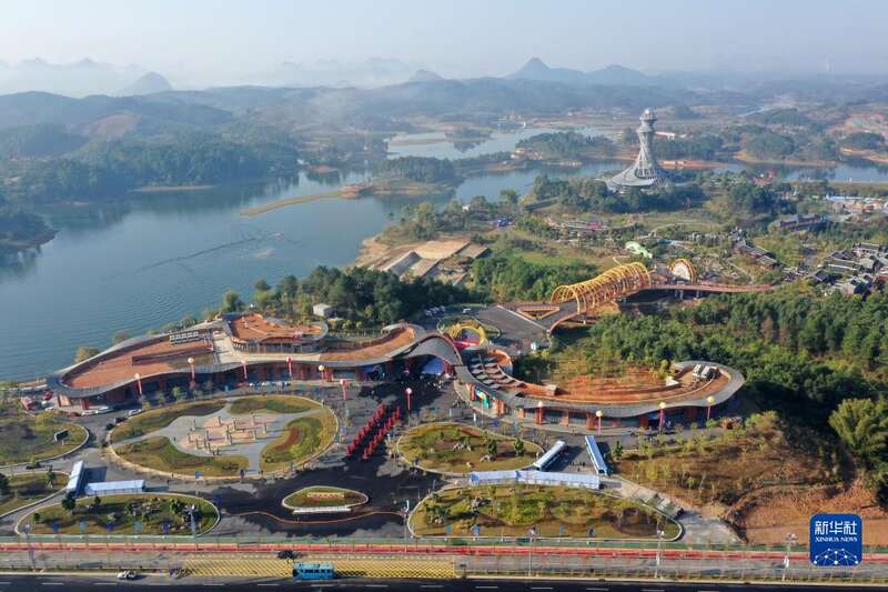 12月15日拍摄的广西河池园博园景观(无人机照片)。