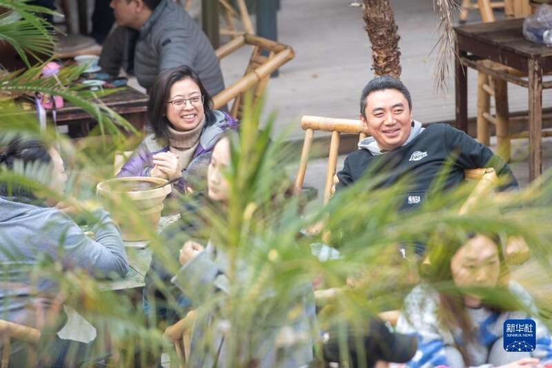 12月24日,市民游客在位于重庆解放碑商圈的著名景点山城巷一家特色茶楼内聊天。