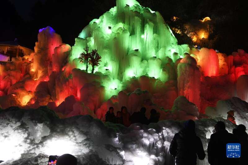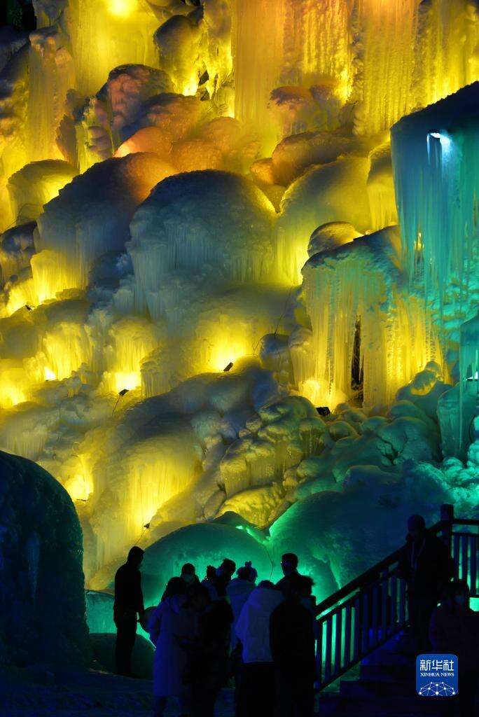 元旦将至,甘肃省积石山保安族东乡族撒拉族自治县大墩峡景区内的冰瀑、冰挂等景观流光溢彩,梦幻的冰雪世界吸引了八方宾客前来赏景游玩。