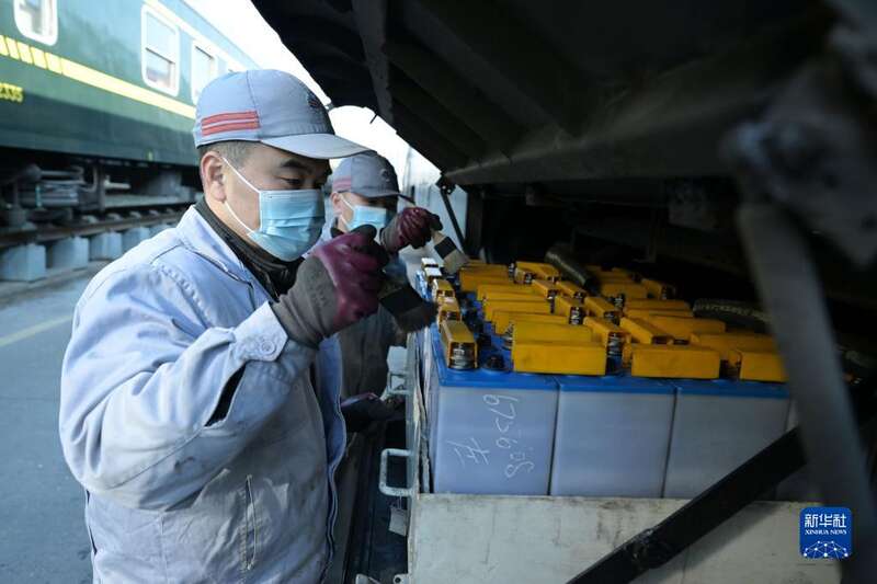 1月4日,在中国铁路上海局集团有限公司合肥车辆段合肥客车整备场,工作人员对旅客列车蓄电池进行整修。