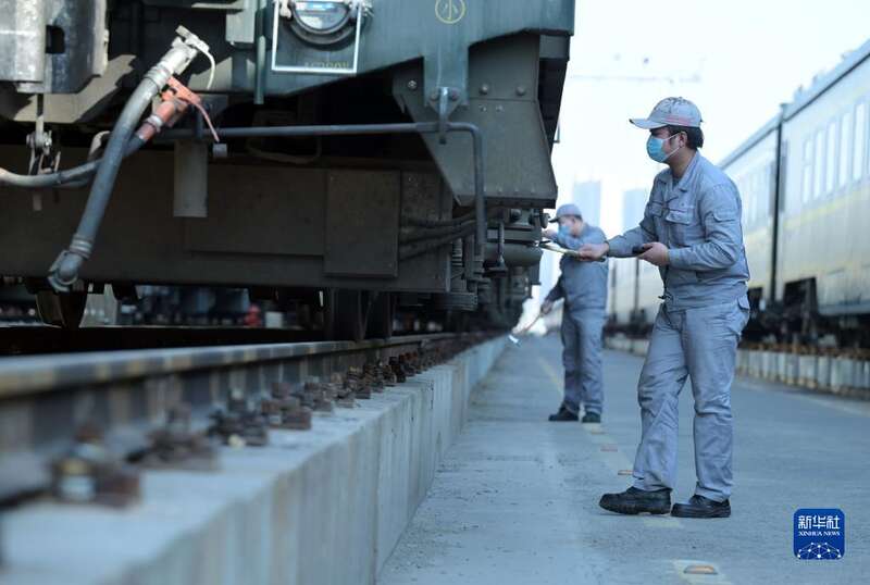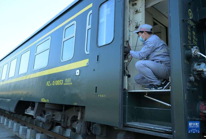 1月4日,在中国铁路上海局集团有限公司合肥车辆段合肥客车整备场,工作人员对旅客列车走行部进行整修。