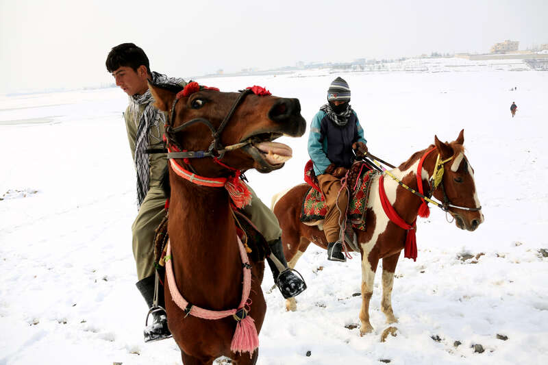 1月23日,在阿富汗首都喀布尔,男子骑马从雪地上走过。气象部门数据显示,自今年1月以来,严寒天气席卷阿富汗大部分地区,部分省份的气温一度降至零下30摄氏度。阿富汗官员23日说,过去两周来阿富汗各地严寒天气已导致104人死亡。新华社发(塞夫拉赫曼·萨菲 摄)