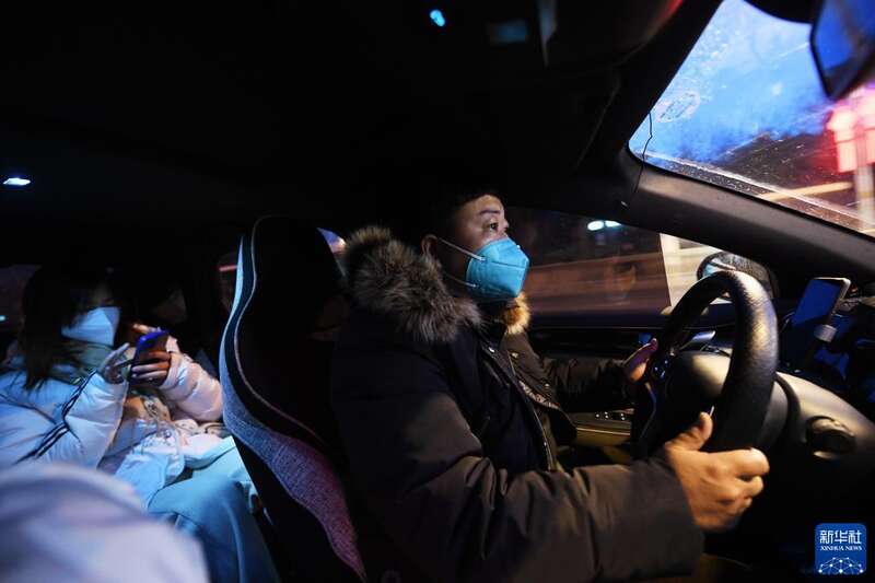 1月28日,滴滴网约车司机刘俊杰在送接到的第一单乘客前往目的地。