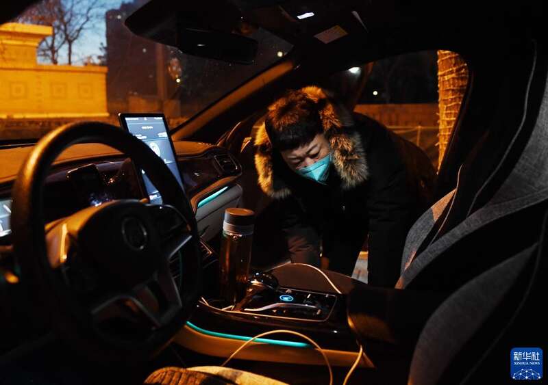 1月28日,滴滴网约车司机刘俊杰在做出车前的准备。
