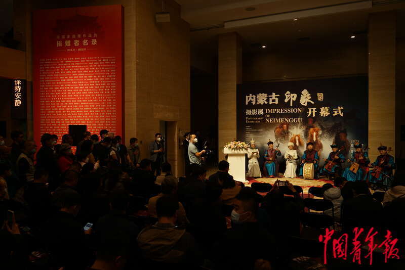 4月1日,中国美术馆,参观者拍摄“内蒙古印象”摄影展上的摄影作品。中青报·中青网记者 李强/摄