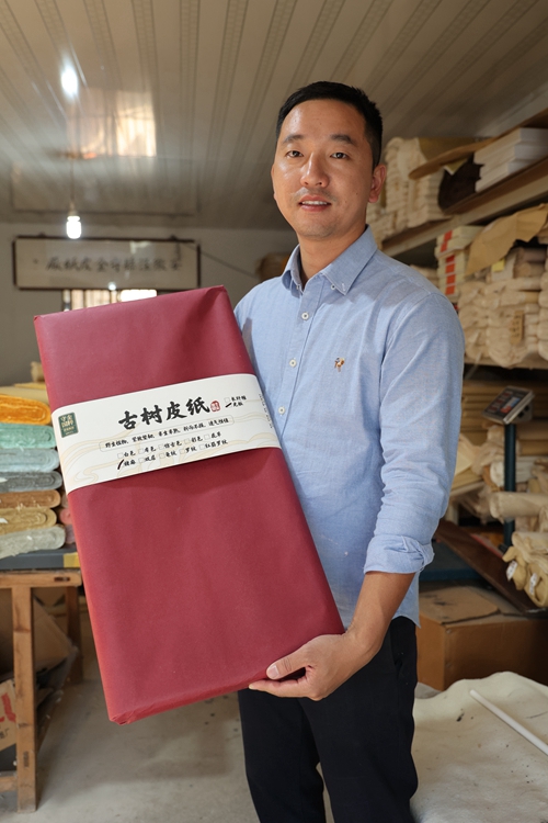为了扩大推广和销售渠道,程玮将大学所学的电商专业知识学以致用,产品功能涵盖书法绘画用纸、礼品包装用纸、印刷出版用纸、创意鲜花用纸、手工艺品用纸、临摹拓片用纸、家庭装饰墙纸等。他还根据客户要求个性化定制纸张,努力让皮纸在生活中的应用范围更广。制作墙纸和水印纸时,他还特意撒上花草或加上一些精美的图案、色彩、装饰,希望以此吸引年轻人。