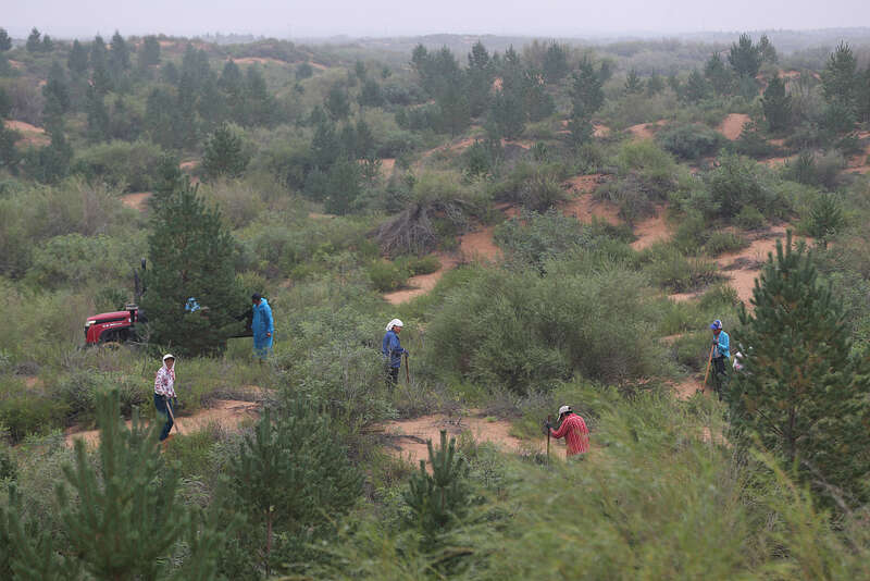 而如今,几代治沙人接力种下的一棵棵树苗,正不断延展着毛乌素绿色的底色。