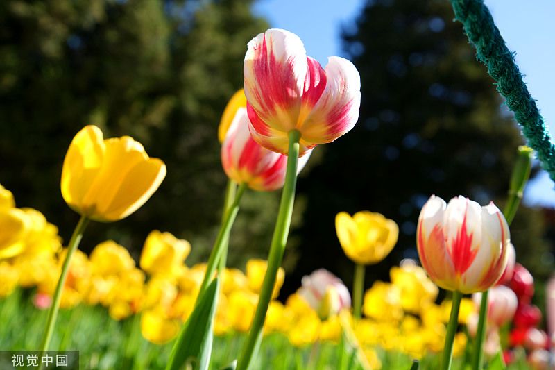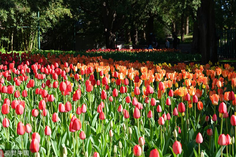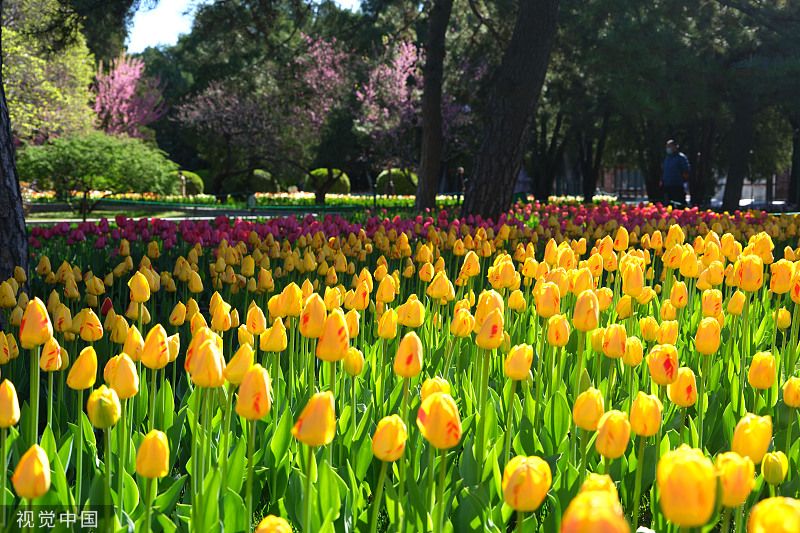 2023年4月7日,北京,中山公园85个品种、近20万株郁金香陆续绽放,盛开的郁金香摇曳生姿。(图片来源:视觉中国)