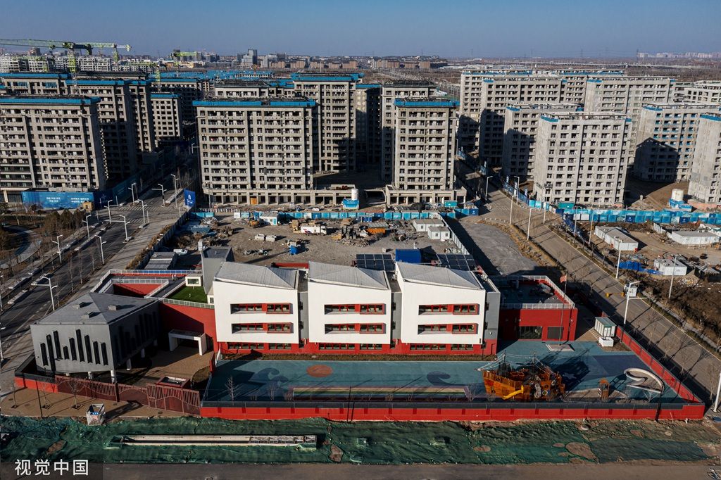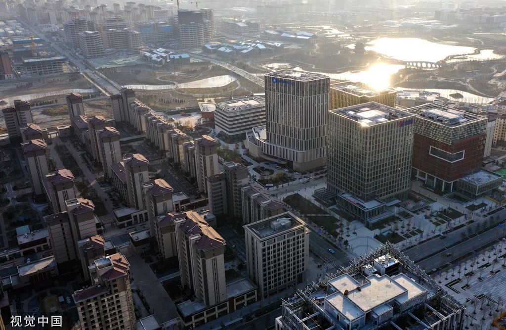 2023年1月1日,雄安新区首批市场化项目之一——雄安·电建智汇城迎来首期开园运营,40余家企业集中入驻,这是雄安新区首次以市场化运作方式大规模集中式的企业入驻,也是雄安新区落实疏解北京非首都功能集中承载地的又一新进展。航拍雄安·电建智汇城。(无人机照片) 中新社记者 韩冰 摄