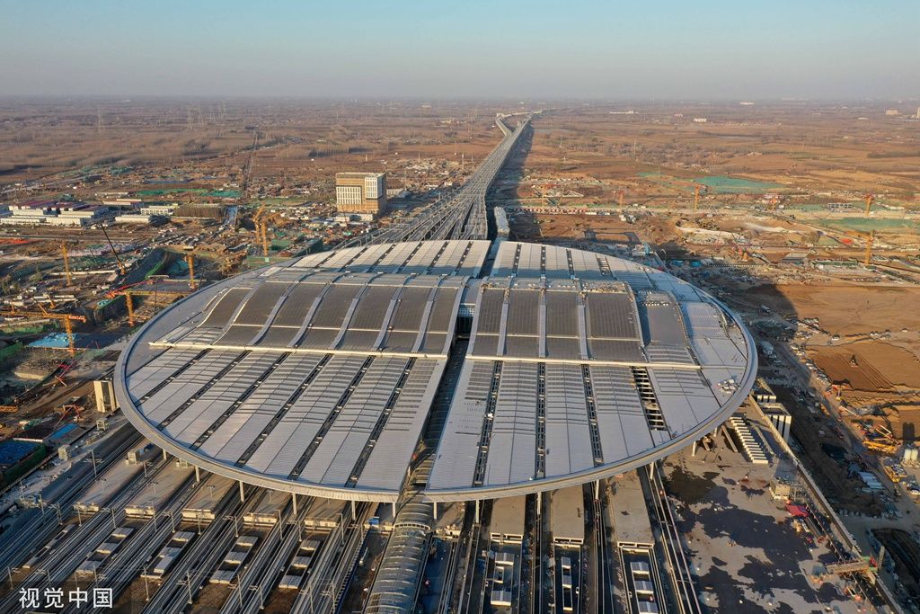 2020年11月27日,河北雄安新区,俯瞰京雄城际终点站雄安站。