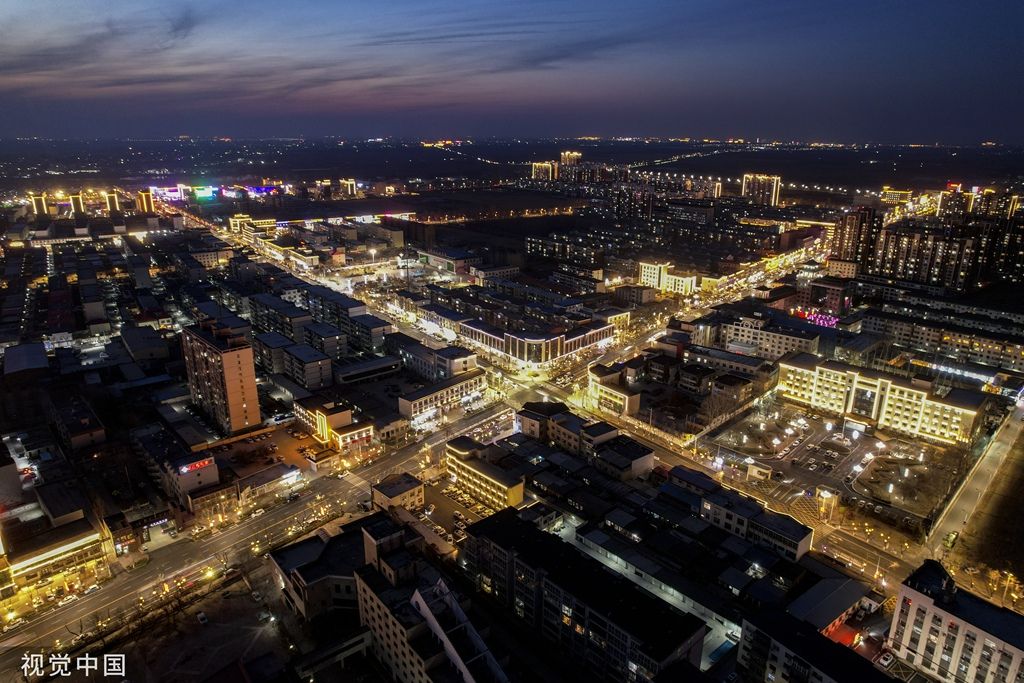 2023年2月20日,河北雄安新区,航拍安新县城夜景。