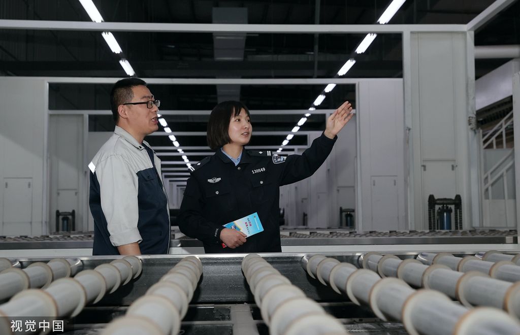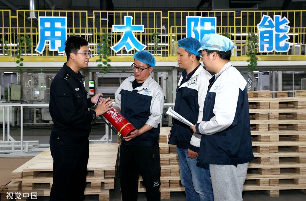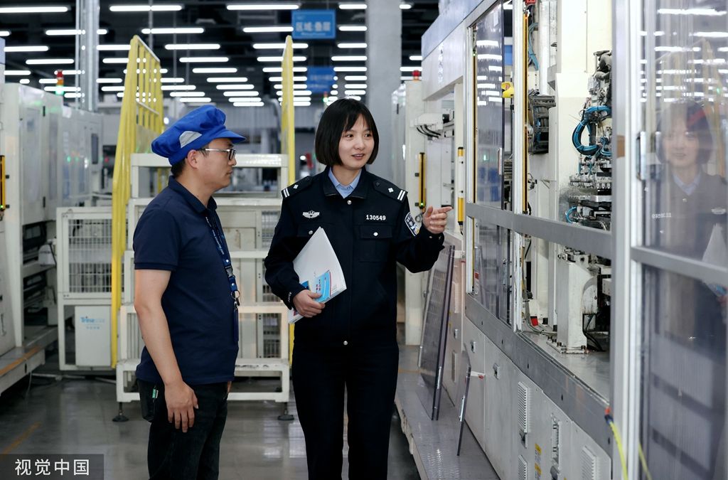 2023年5月10日,江苏省宿迁市公安局经济技术开发区分局组织民警在企业了解安全防护措施。