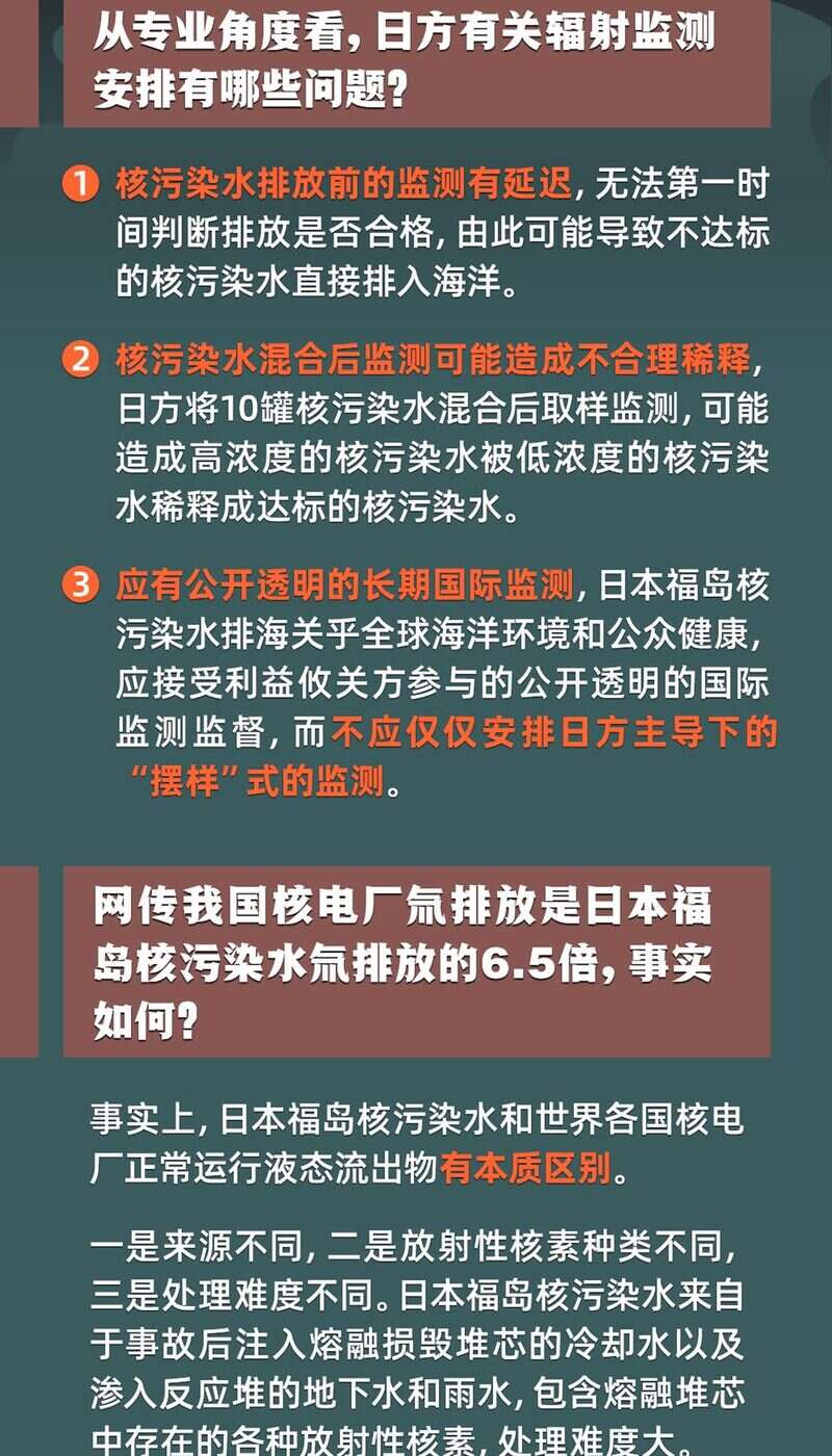 近日,国际原子能机构发布了日本福岛核污染水处置综合评估报告。报告是否科学?日核污水排海还存在哪些问题?我国海洋辐射环境监测如何安排?读图来看生态环境部解读。