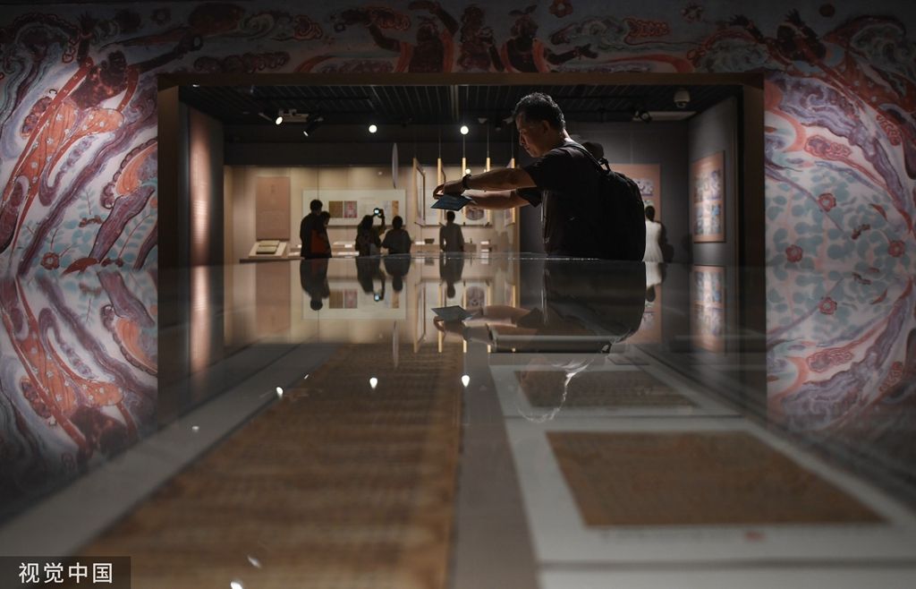 2023年7月12日,杭州,佛经文物吸引参观者。 中新社记者 王刚 摄