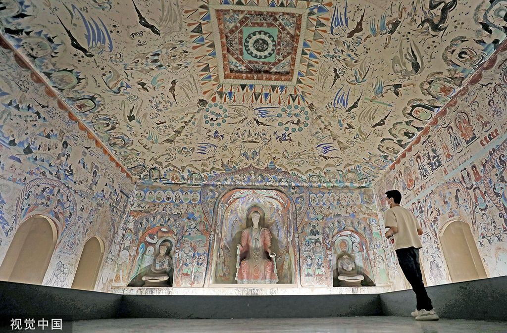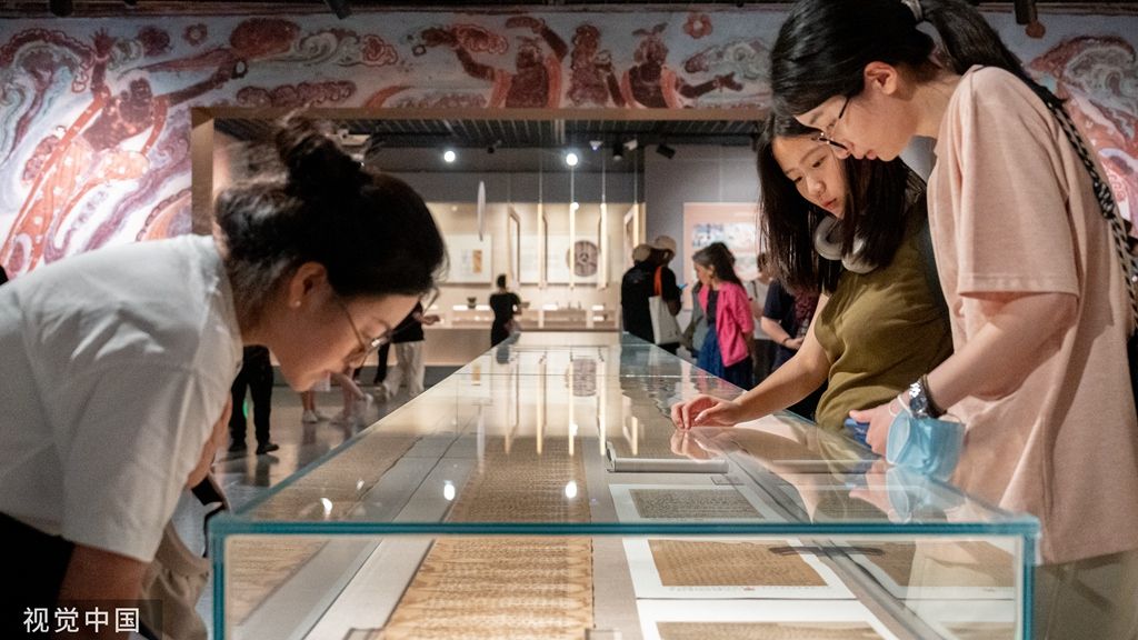 2023年7月12日,杭州,“2023丝绸之路周”活动在中国丝绸博物馆开幕,主题配套展览“文明大观:丝绸之路上的敦煌”同时开展。观众观展。