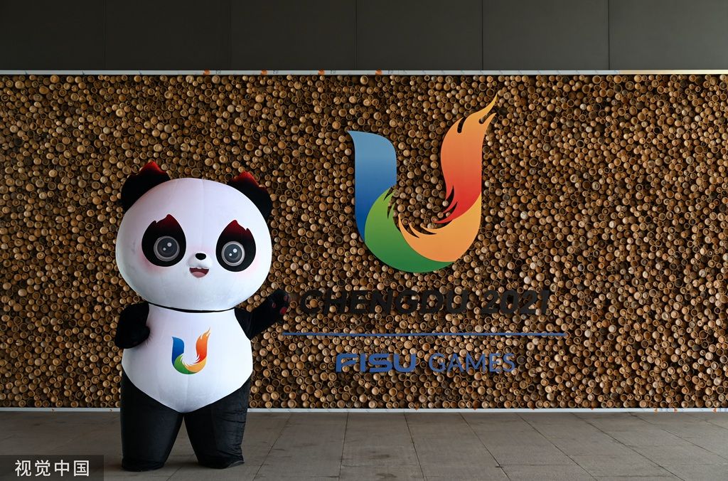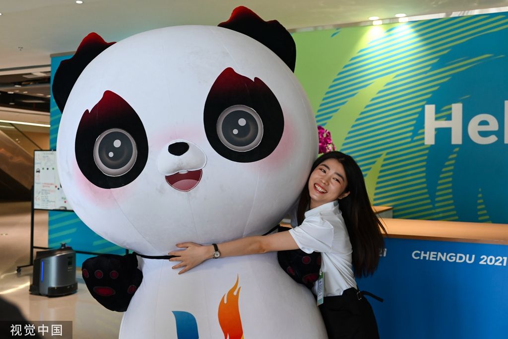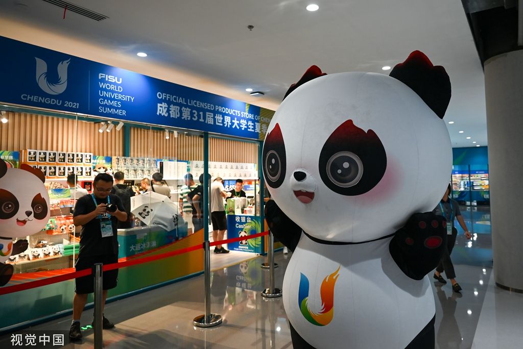 2023年7月12日,成都,蓉宝来到大运会官方商品特许零售店。