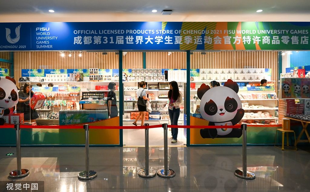 2023年7月12日,成都,大运会官方商品特许零售店。