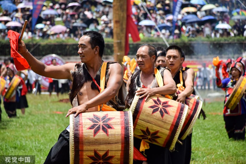 2023年8月10日,昆明,以“激情火把 魅力石林”为主题的2023中国石林国际火把狂欢节盛大启幕。彝族传统祭火仪式——迎送火种。