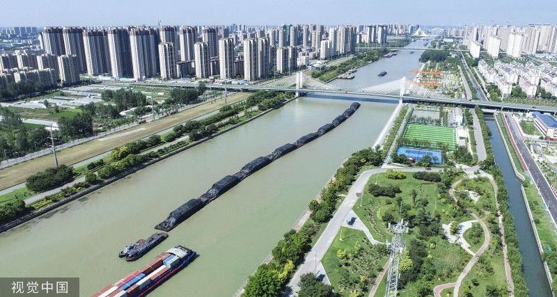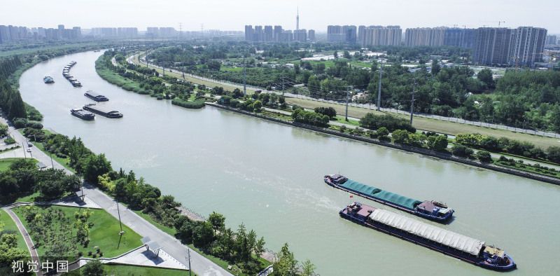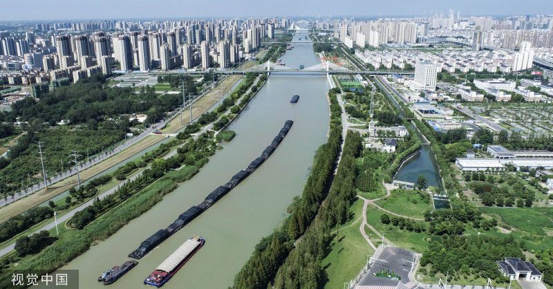 2023年8月31日,江苏淮安,素有“黄金水道”之称的京杭大运河淮安段,运输各类物资的货船往返穿梭,一片繁忙。