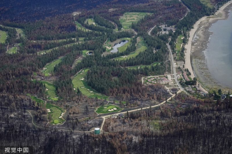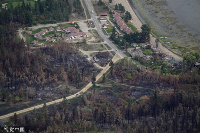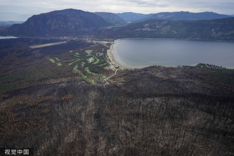 当地时间2023年9月11日,加拿大不列颠哥伦比亚省斯奎拉克斯,小舒斯瓦普湖岸边,被布什河东部野火烧毁的树木。