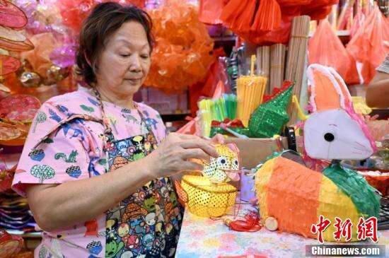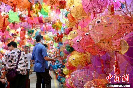 各种不同外形的传统灯笼吸引市民购买。