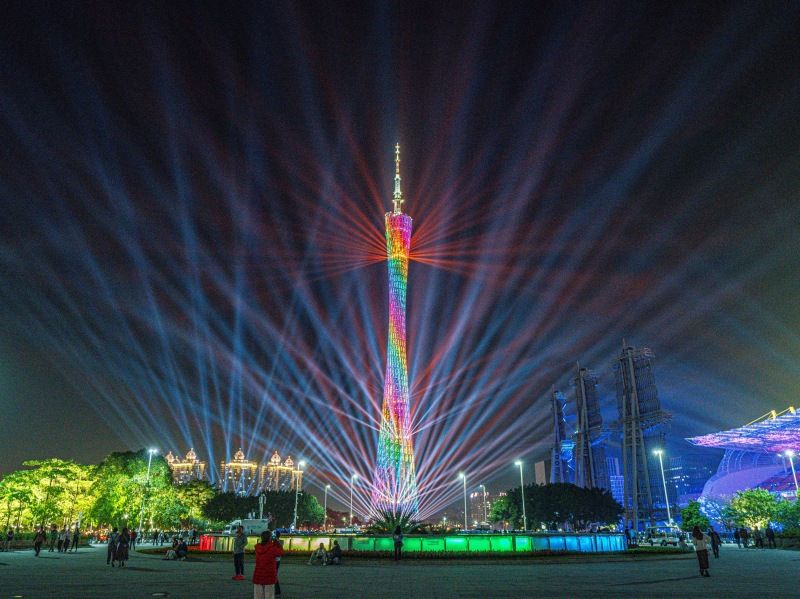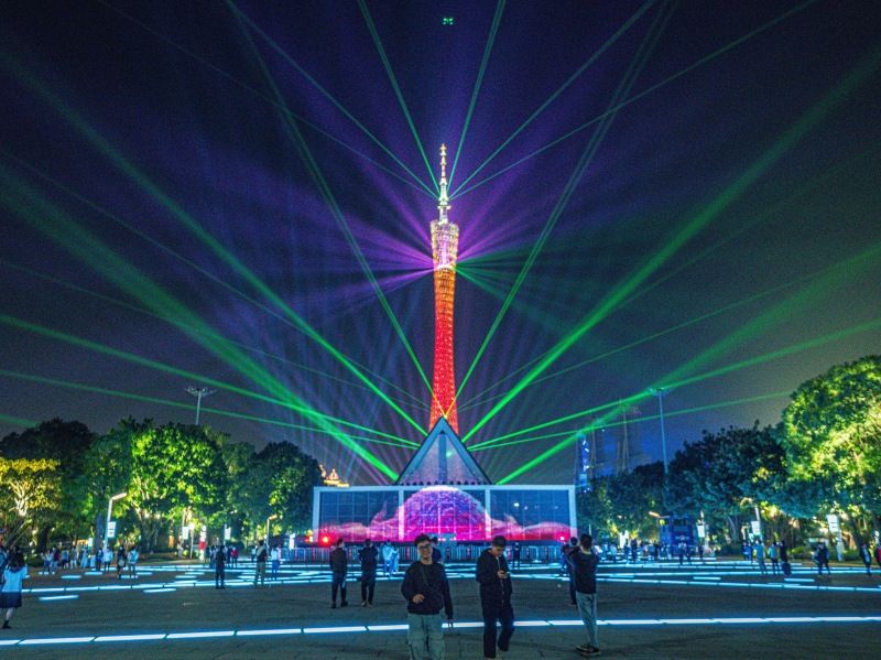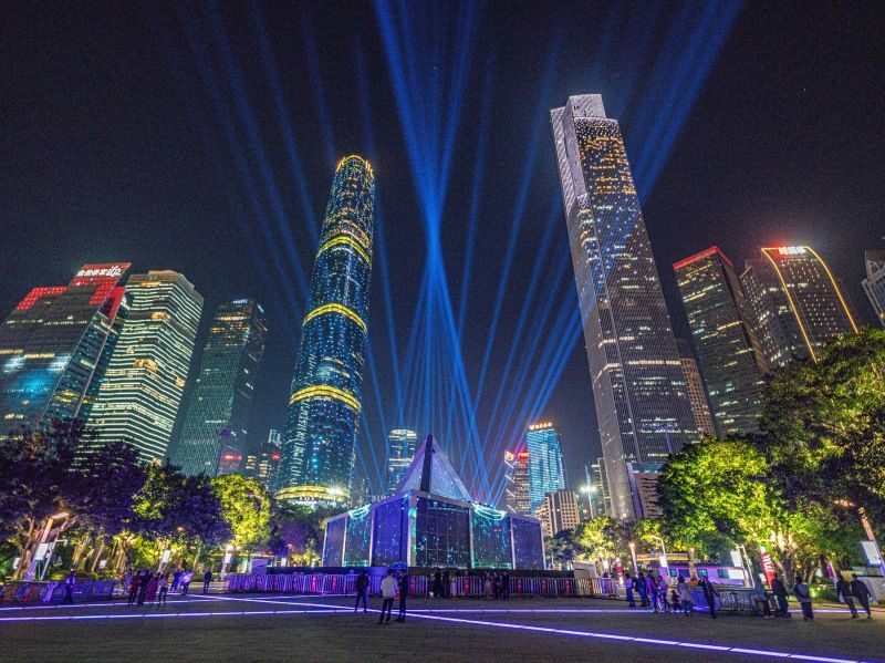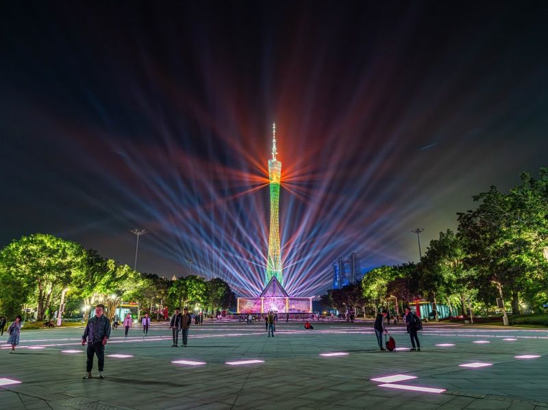 2023年11月20日,广州花城广场,2023广州第十二届国际灯光节彩排现场。