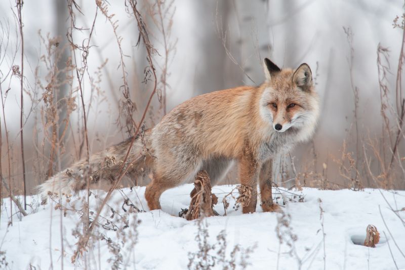 2023年1月29日,黑龙江安达,太平庄镇,赤狐不畏严寒在雪地中栖息。
