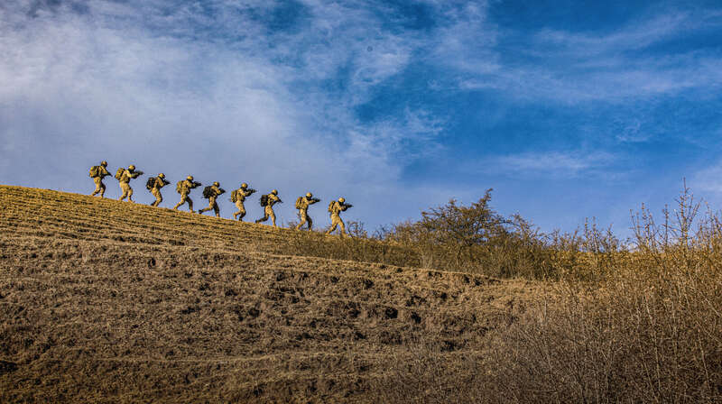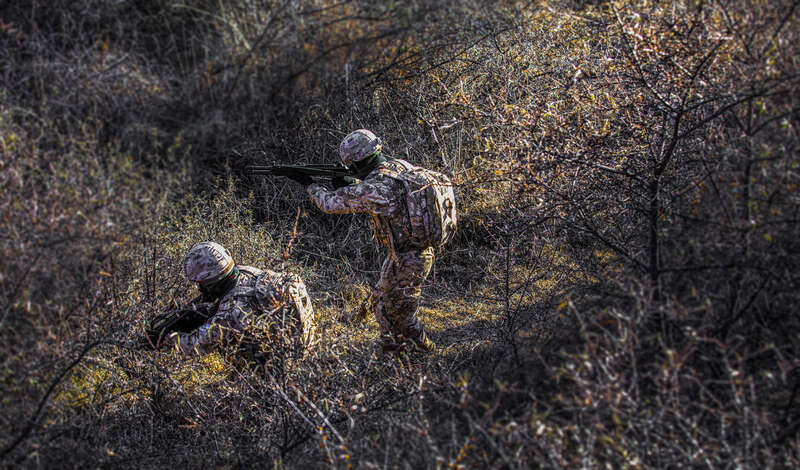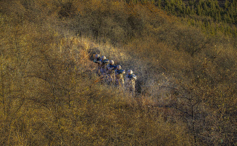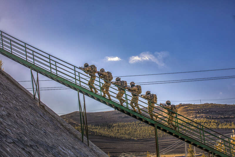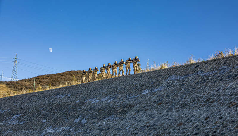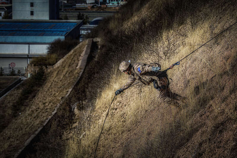 连日来,武警甘肃省总队某部着眼实战需要,将特战队员拉到海拔3400米的高山密林深处,围绕山地急行军、攀岩索降、战术搜索、山林捕歼、坡地冲刺、野外生存等课目展开演练。训练严格按照野战化、实战化要求,全面锻炼特战队员在复杂环境下的实战能力,为下一步遂行多样化任务打下坚实基础。(闫凯 张维 刘沛文并摄)