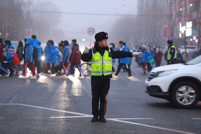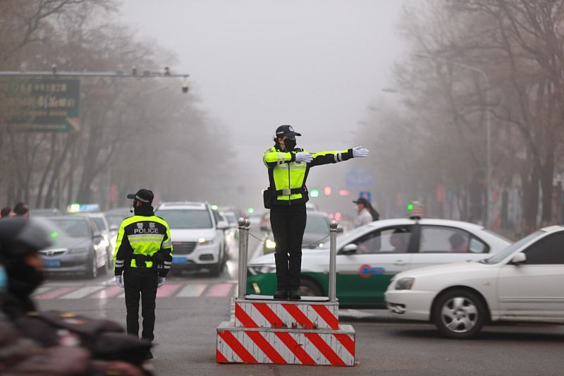 2023年12月8日,辽宁省阜新市出现大雾天气,能见度低,为确保道路交通安全,辽宁省阜新市公安局交警支队细河大队以“雾”为令,迅速启动恶劣天气应急预案,组织警力在辖区定点执勤,对重要路段、重要时段加强指挥疏导,加强巡逻频率和巡逻密度,坚决预防事故发生。