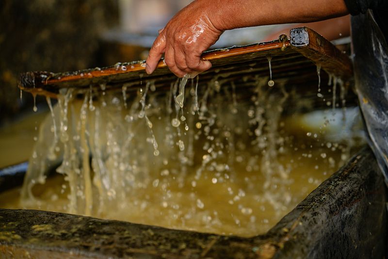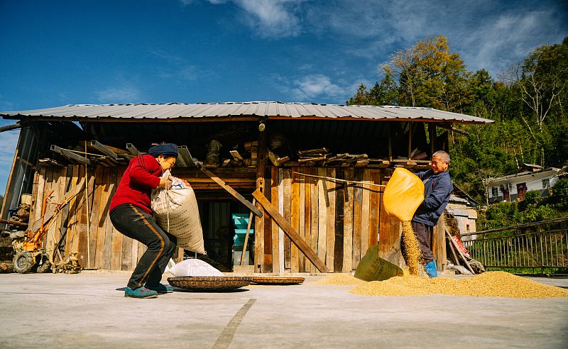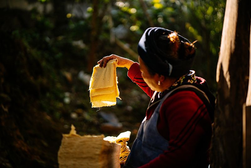 2023年12月7日,贵州省黔西南布依族苗族自治州,望谟县打易镇山平村高赖组,清晨的阳光中,村民胡仕周和妻子王小为开始一天的忙碌,制作草纸。村民仍然延续祖辈相传的以竹子为原料古法造纸技术,几乎以《天工开物》记载的造纸方法如出一辙,完整的造纸过程可以说是造纸术“活化石”的最好见证。