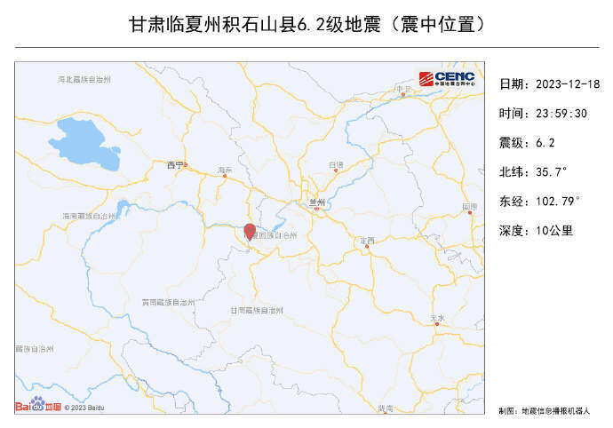 12月18日23时59分,甘肃临夏州积石山县发生6.2级地震。鉴于灾情严重,国务院抗震救灾指挥部、应急管理部将国家地震应急响应提升至二级,国家防灾减灾救灾委员会、应急管理部将国家救灾应急响应提升至三级。