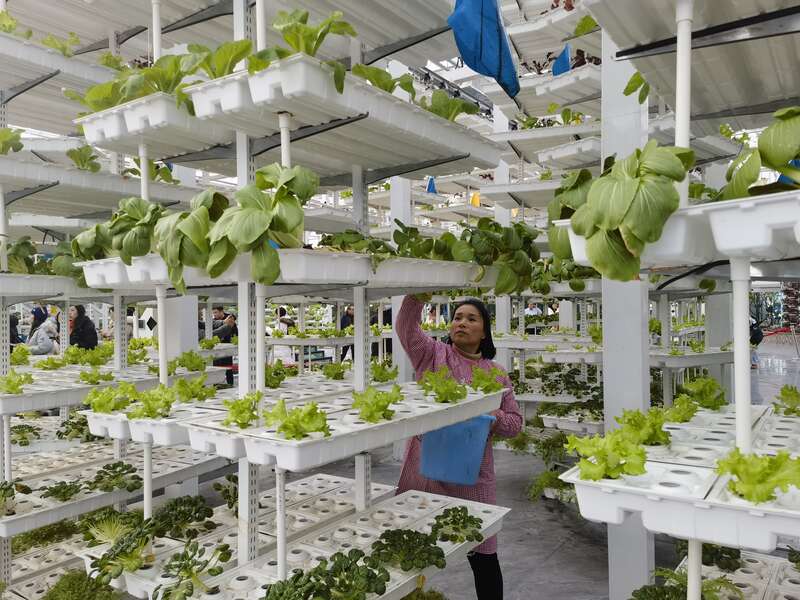 12月19日,在未来农业科技馆内,工人正在上班 朱洪园/摄