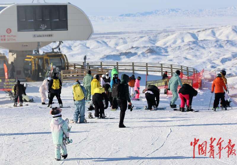 12月19日,在位于新疆阿勒泰市的将军山国际滑雪度假区,游客从缆车上下来准备体验双板滑雪。中青报·中青网记者 谢洋/摄