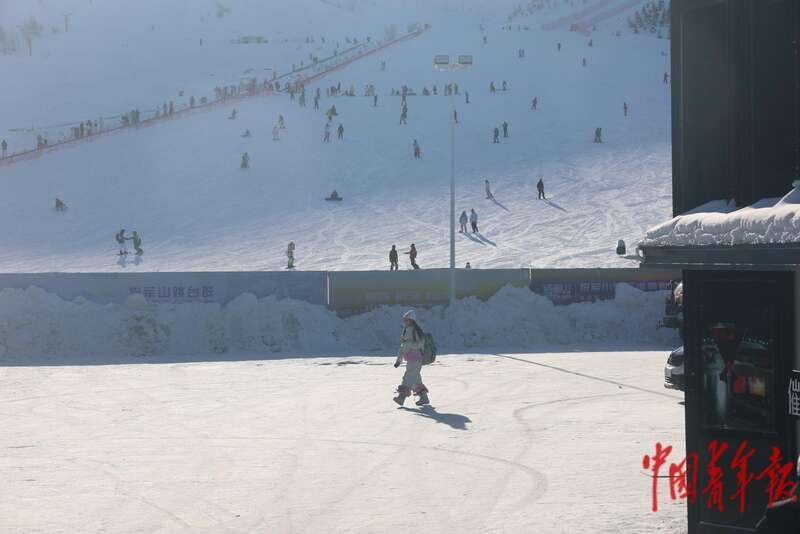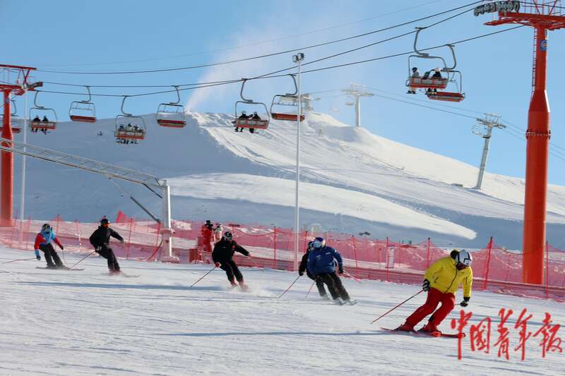12月19日,在位于新疆阿勒泰市的将军山国际滑雪度假区,游客们体验冰雪乐趣。中青报·中青网记者 谢洋/摄