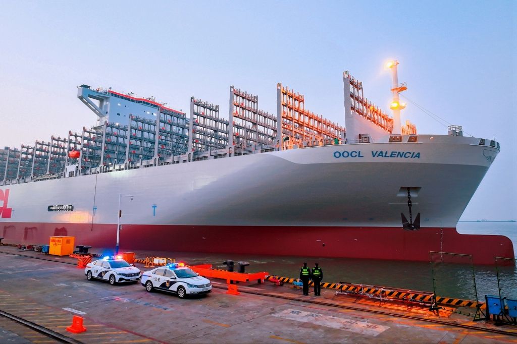 2024年1月9日,江苏南通,“中运川崎396”轮离开江苏省南通中远海运川崎船舶工程有限公司泊位后,经过长江南通段驶向大海试航。