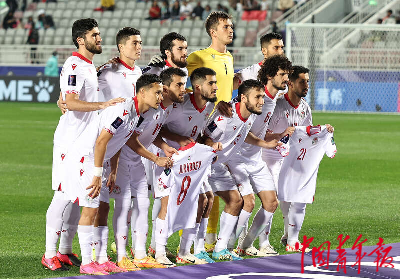 1月13日,卡塔尔多哈阿卜杜拉·本·哈里发体育场,2023年卡塔尔亚洲杯足球赛小组赛A组第一轮,中国男足迎战塔吉克斯坦队的比赛,塔吉克斯坦队首发阵容。刘占崑/摄