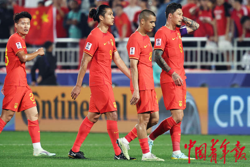 1月13日,卡塔尔多哈阿卜杜拉·本·哈里发体育场,2023年卡塔尔亚洲杯足球赛小组赛A组第一轮,中国男足迎战塔吉克斯坦队的比赛后,中国队队员只能接受平局。刘占崑/摄