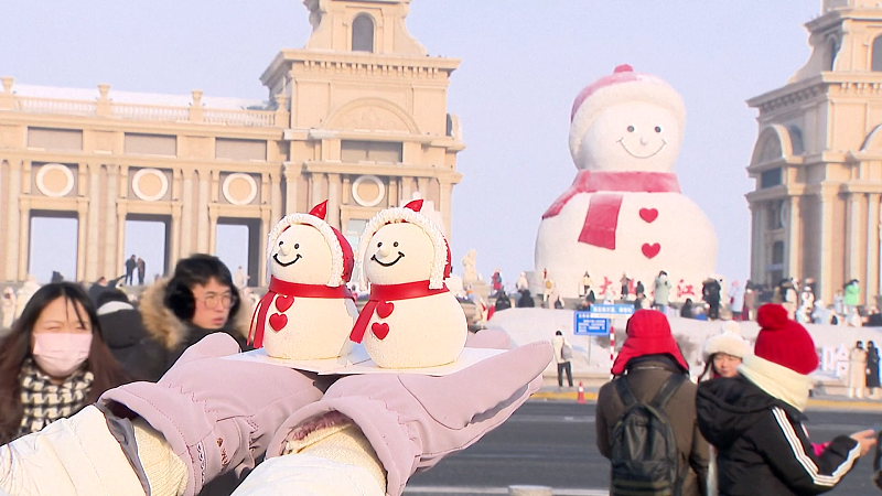 2023年冬,随着哈尔滨冰雪旅游的火热,哈尔滨“制造”的文创食品也备受游客青睐,在一些咖啡店、面包店,带有哈尔滨特色的蛋糕、饮品、冰棍等格外热销,而且创意造型十分惊艳。