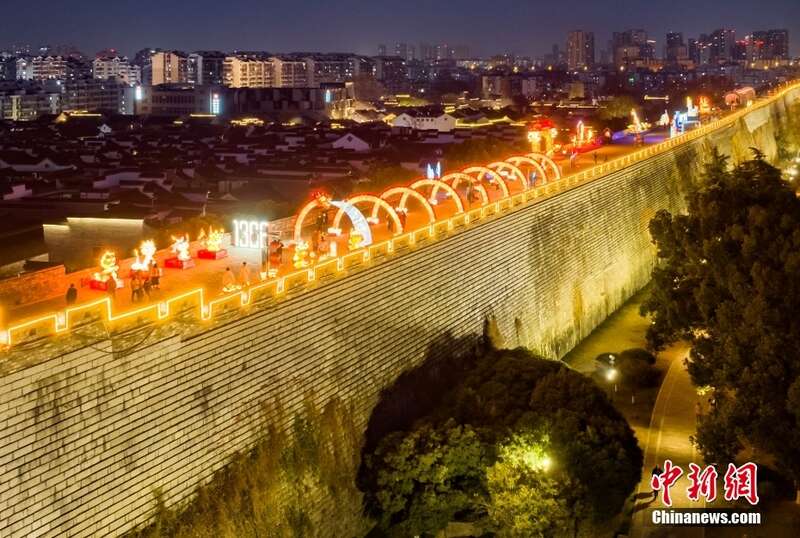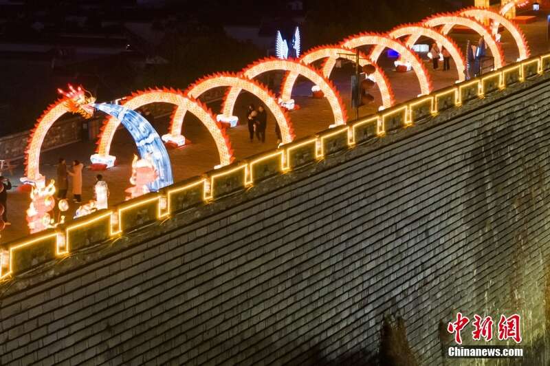 南京明城墙彩灯璀璨迎新春