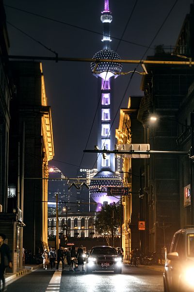 九江路很长,基本“一步一个风景”,路上有很多复古的街景和建筑,让人身临其境。这里曾因外资银行集中,被誉为“中国的华尔街”。如今,九江路尽头,隔江可见对岸的东方明珠塔,这条路也续写着上海拜年的发展。图为九江路夜景。