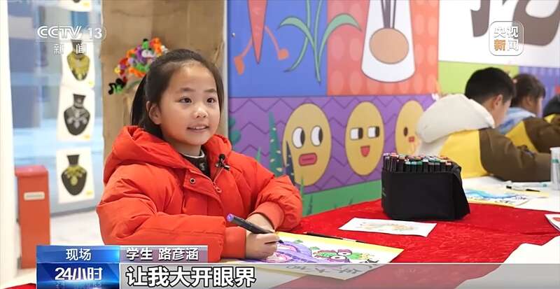 在江苏盐城的多个文化场馆,不同主题、不同形式的文化活动正在轮番上演。在盐南高新区一个场馆内,小朋友们围坐在一起,通过版画、墙画等形式,创作一幅幅与龙年相关的画作。