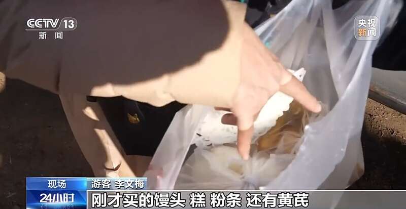 游客 李文梅:我从市区过来的,刚才买的馒头、糕、粉条,还有黄芪,过来采购点年货。