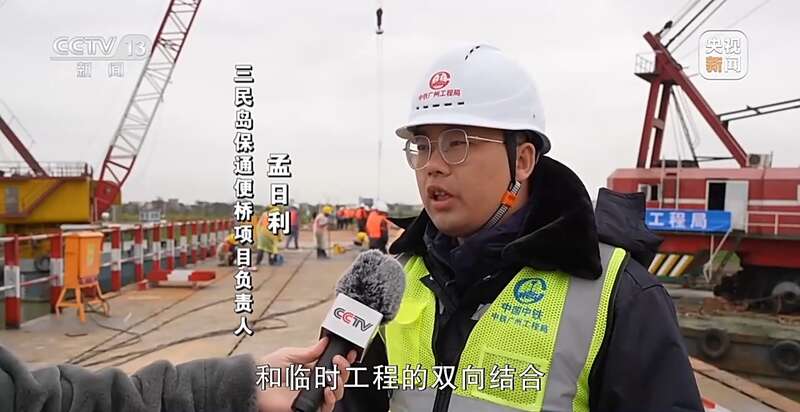 三民岛保通便桥项目负责人 孟日利:设计之初就考虑了永临结合。永临结合就是永久使用和临时工程的双向结合,既可以满足到临时通行,也可以作为一个永久工程保留。