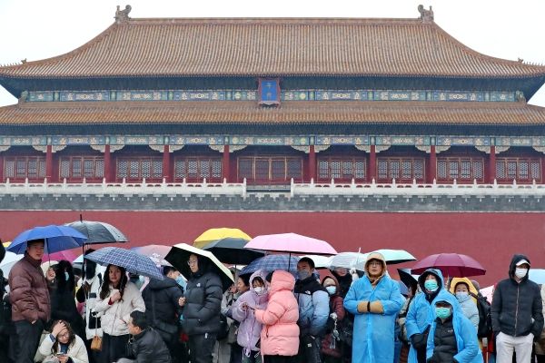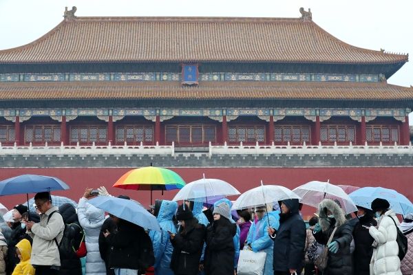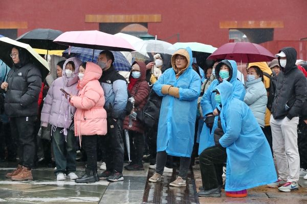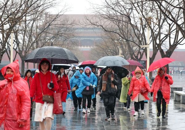 2024年3月5日,北京故宫博物院人头攒动,游客冒雨雪游览热情不减。当日是“惊蛰”节气,雨夹雪如约到访京城,最高气温跌至2摄氏度,体感阴冷。
