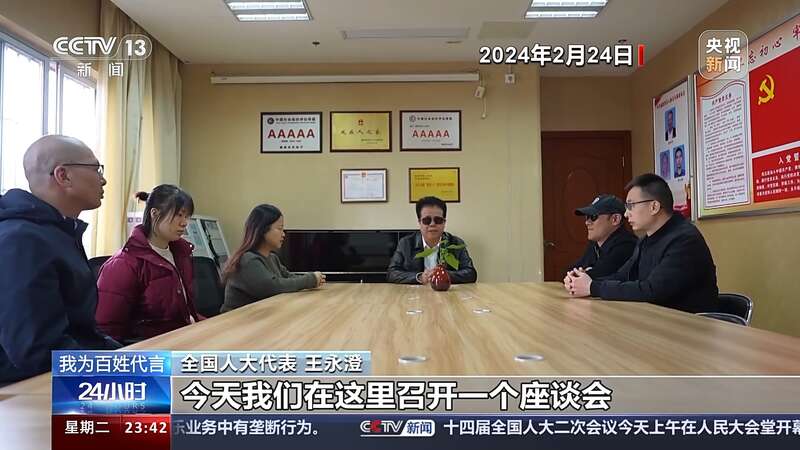 全国人大代表、中国残疾人联合会副主席 王永澄:今天我们在这里召开一个座谈会,听听你们一些基层的、我们广大的盲人朋友一些想法或者建议意见,需要我们带到全国两会,特别在残疾人所需所求所盼和残疾人教育就业养老等方面。