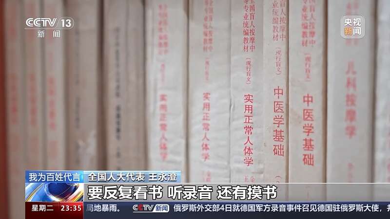 全国人大代表、中国残疾人联合会副主席 王永澄:第一次跑进(学校)去,因为学校不大,首先怎么到食堂,怎么到班级,怎么到卫生间,怎么到宿舍。接下来就是学习,因为你看不到、盲文基础差,要反复看书、听录音,还有摸书。