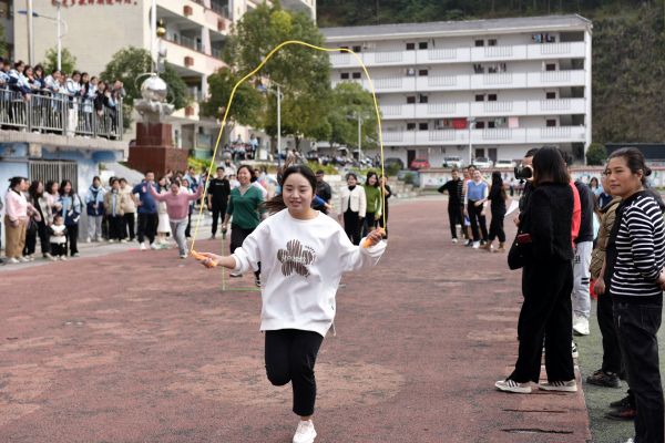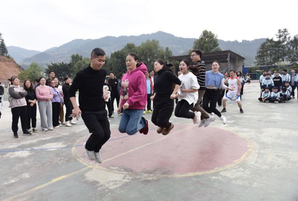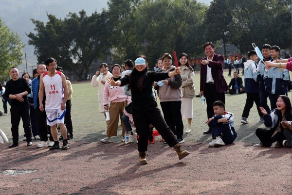 2024年3月7日,贵州黔东南州,从江县下江中学的老师们参加趣味活动,尽情释放工作中的压力,享受趣味活动带来的快乐,迎接国际妇女节。