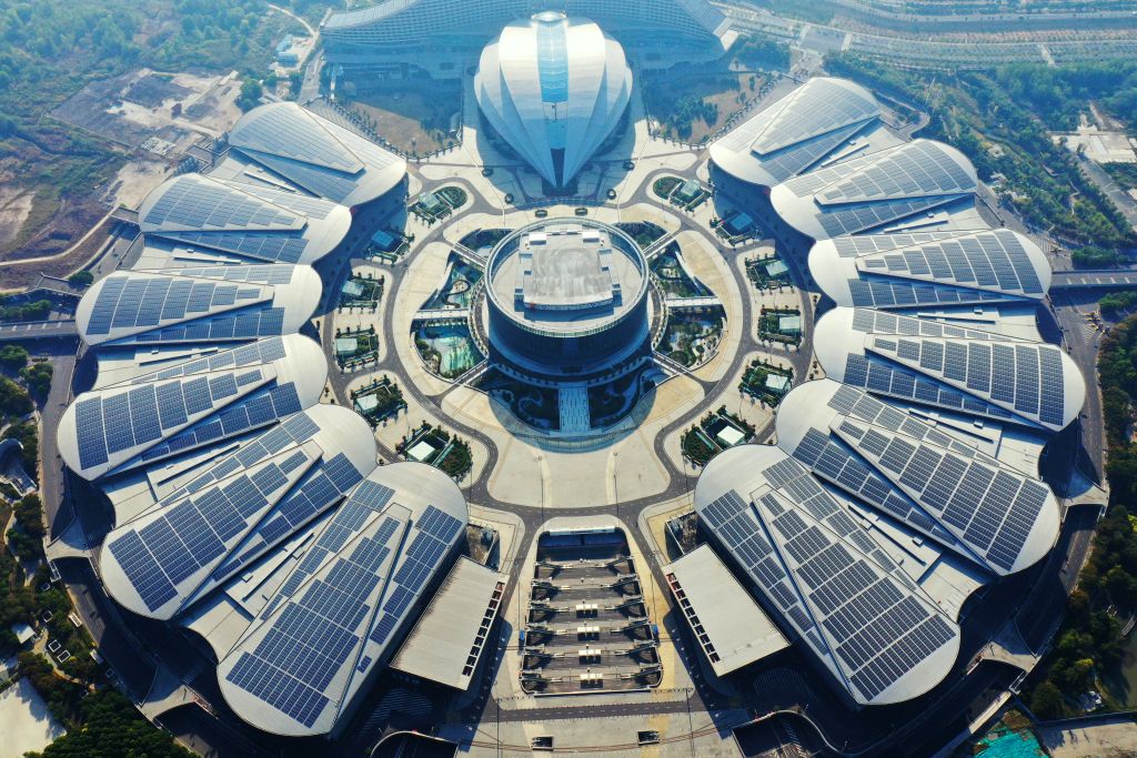 2022年10月15日,航拍武汉国际博览中心。