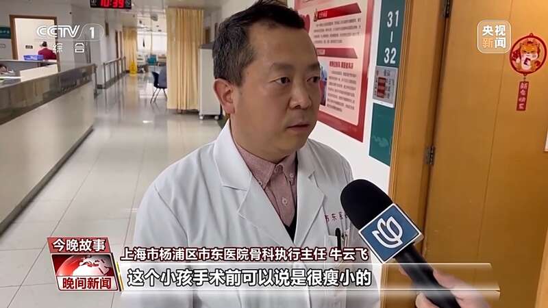 上海市杨浦区市东医院骨科执行主任 牛云飞:这个小孩手术前可以说是很瘦小的,身高1米22,术后现在我们测量身高达到了1米43。